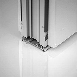 2. Perfil suelo-techo fabricado mediante extrusión de aluminio, acabado anodizado plata mate en su versión de acceso.